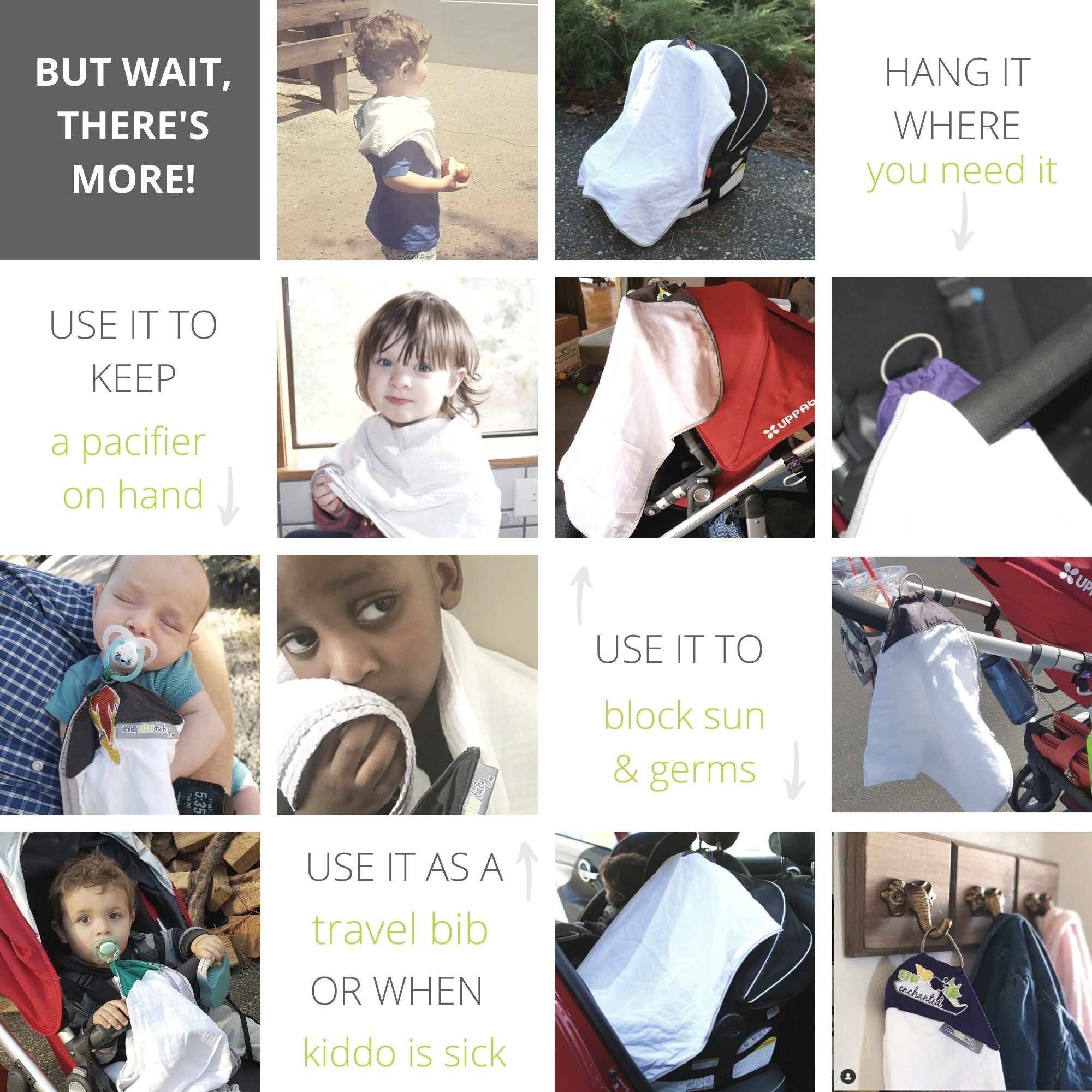 - Self-adhesive Dragon Hook - made of soft pvc with metal hook. Easy to peel and stick where you want the burp cloths to hang.