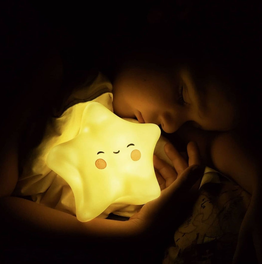 Our Little Star night light is a parent's dream because it's safe, easy to use and it empowers your child to conquer their fear of the dark! Simply press the button for soft LED light that stays cool to the touch. There are no rough edges or battery compartments that can come open so you can feel confident giving it to your little one.Ā