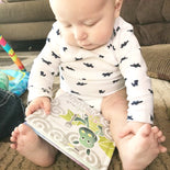 - The repetitive vocal responses in the story will help baby grow their receptive vocabulary and try to make similar sounds.