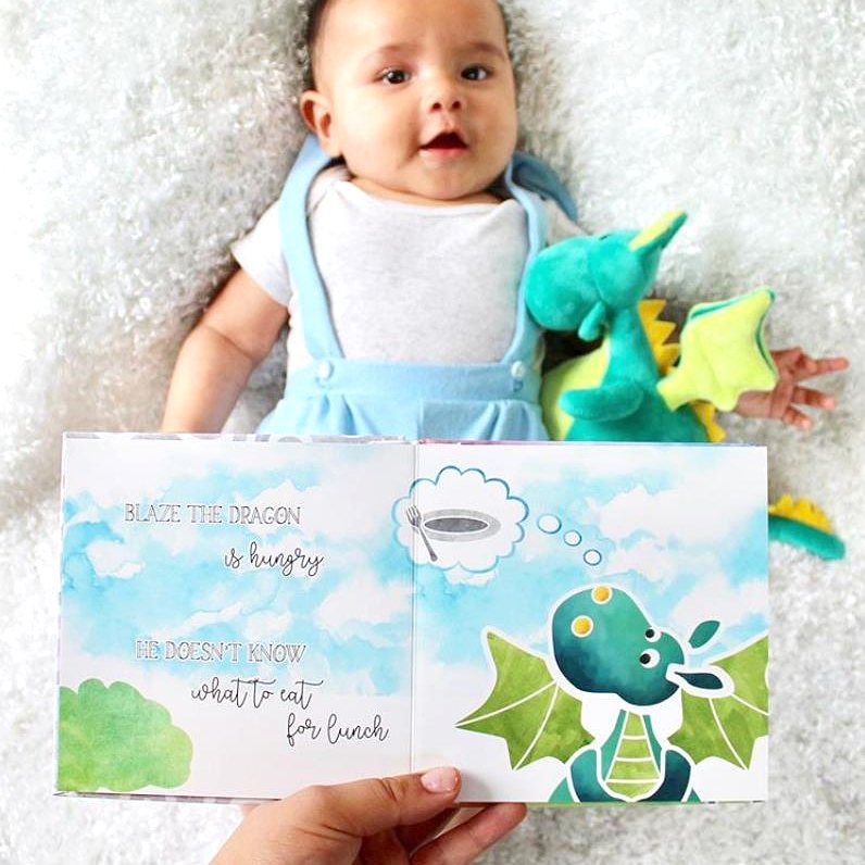 Blaze is a baby dragon who loves adventures! This original board book (for babies, toddlers and preschoolers) written and illustrated by Ever After Baby founder, Ashlei Jackson, introduces healthy foods and colors; naturally engaging babies in playful interactions with parents to make story-time fun. This same story is also available with our purple dragon, Bliss.
